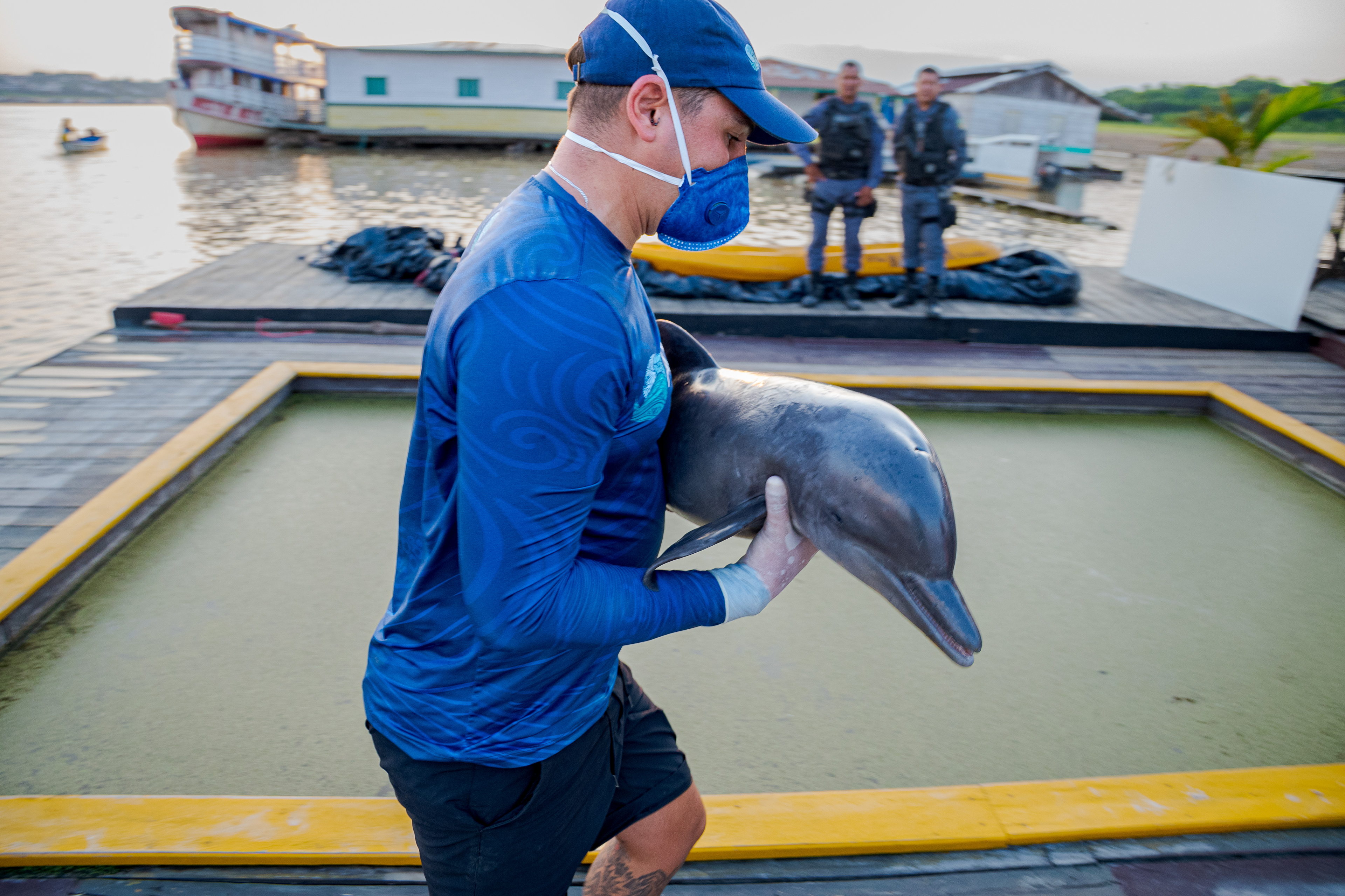 A team of researchers and veterinarians attempt to save a baby dolphin that was demonstrating signs of heat stress. Unfortunately, the animal did not survive.