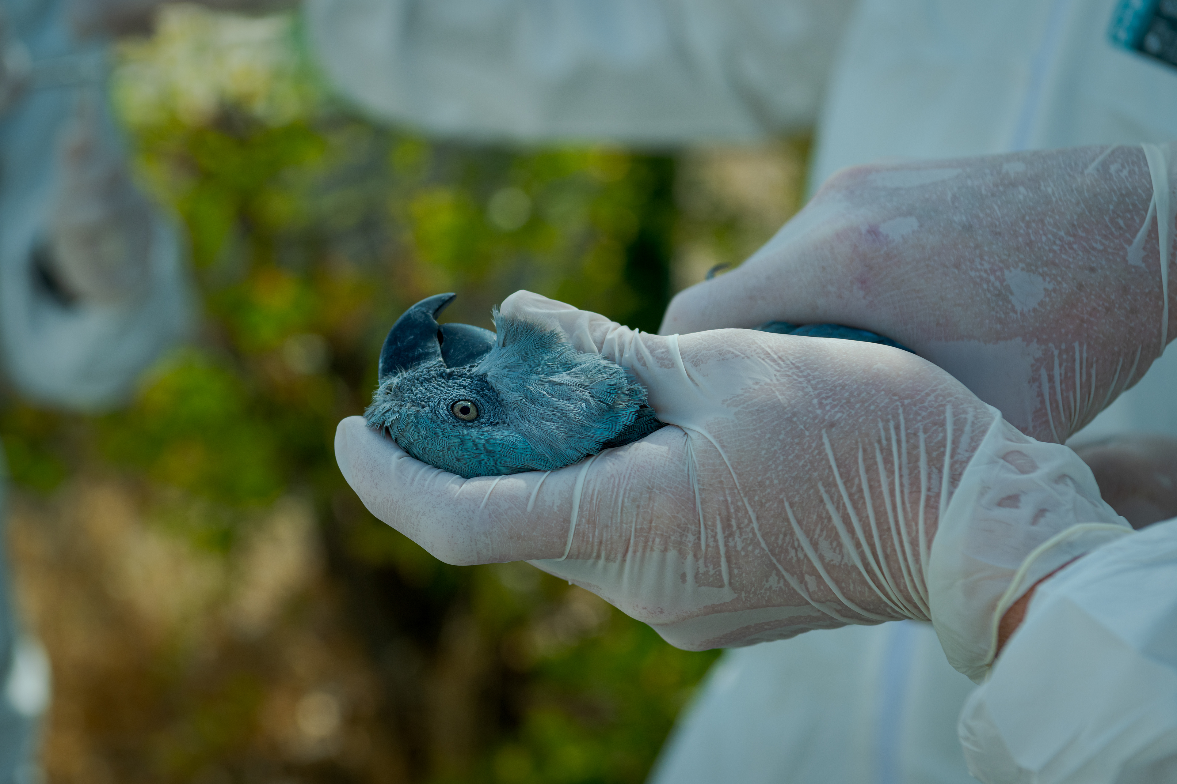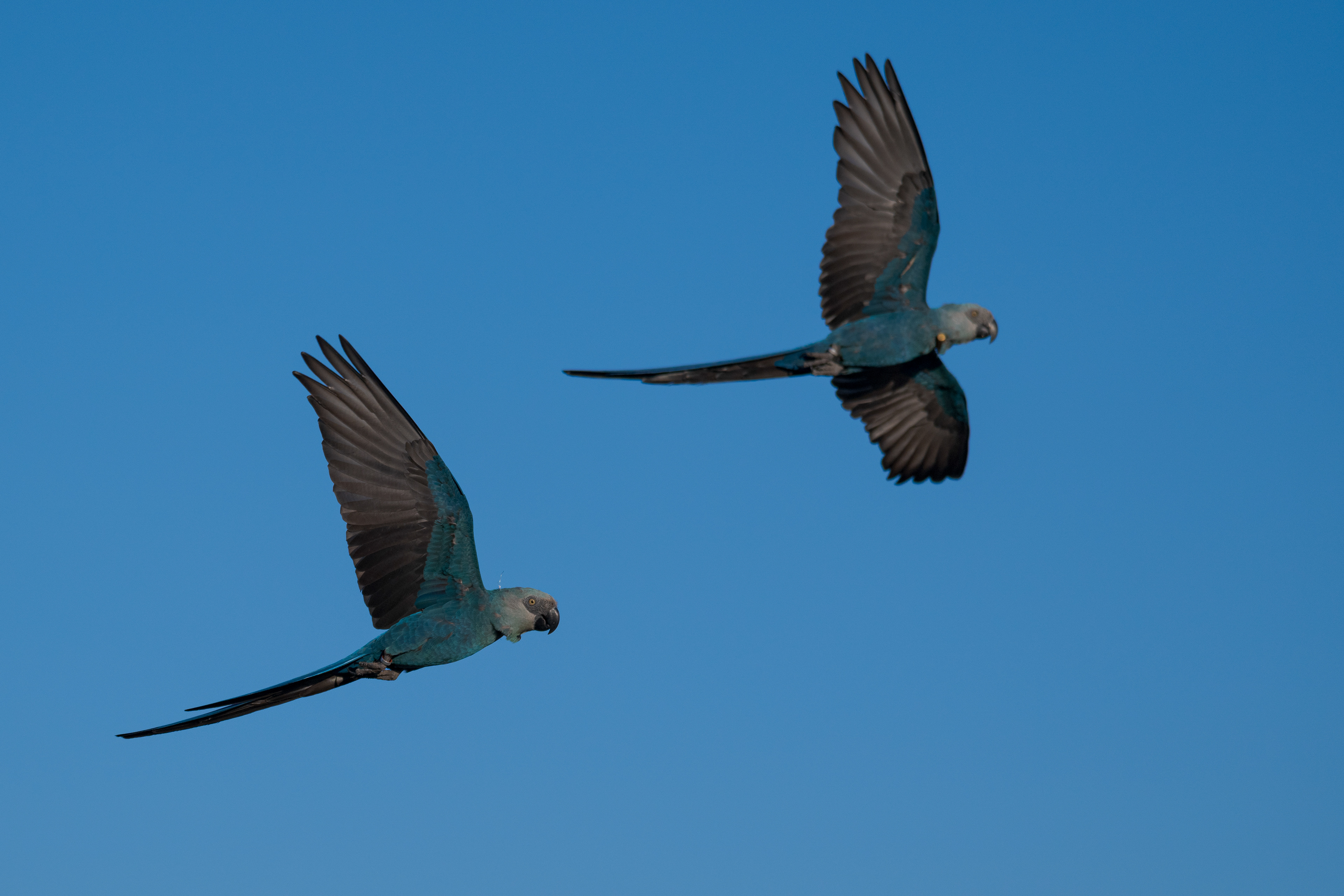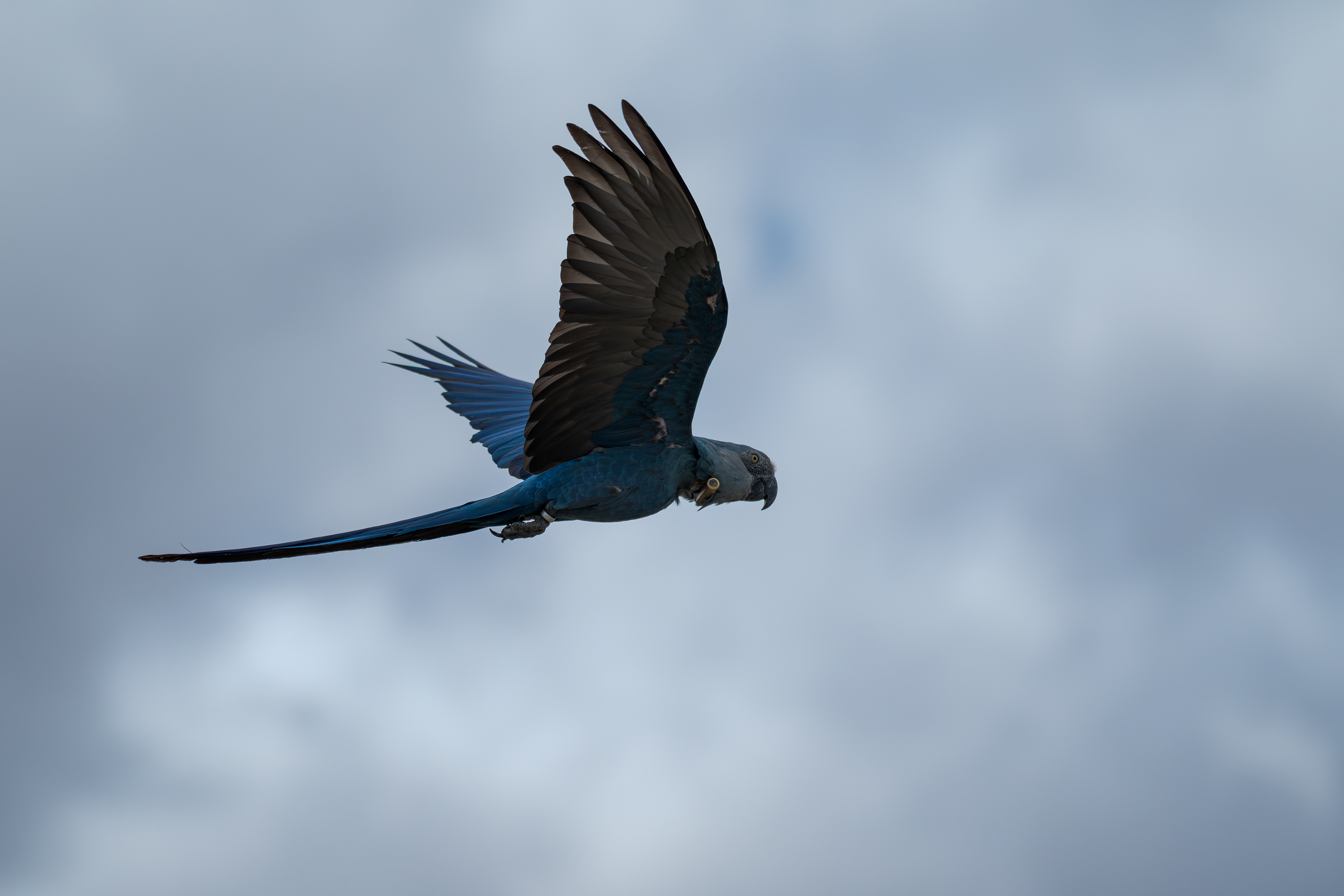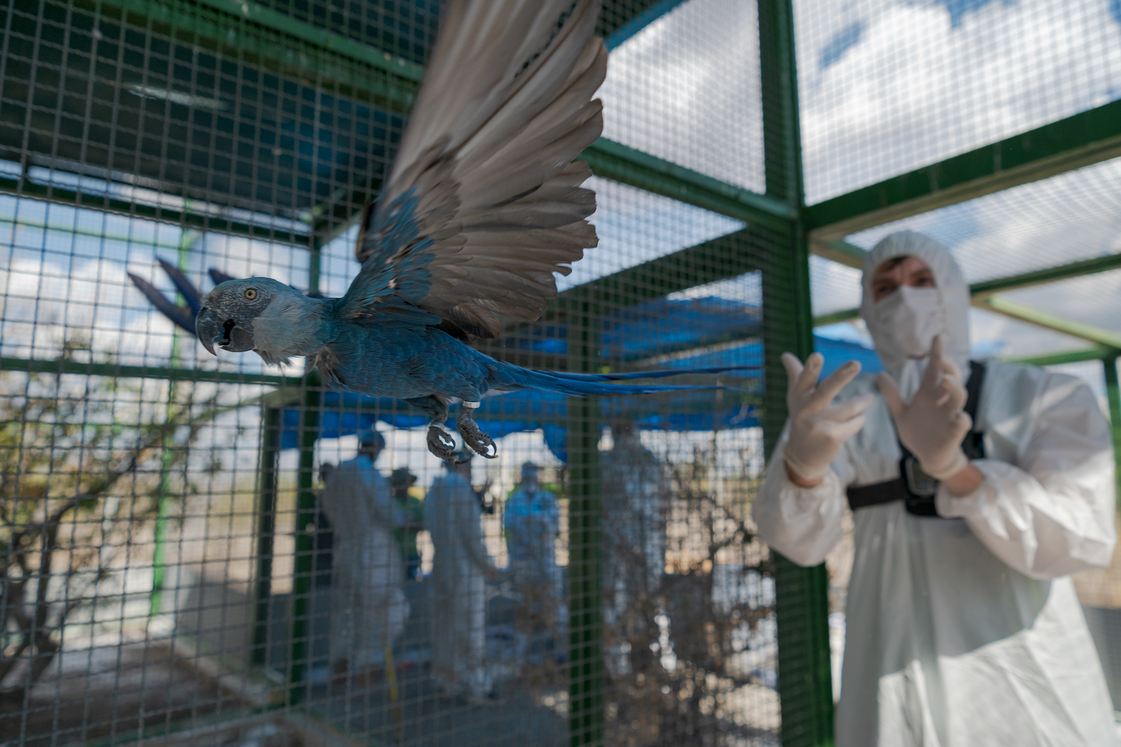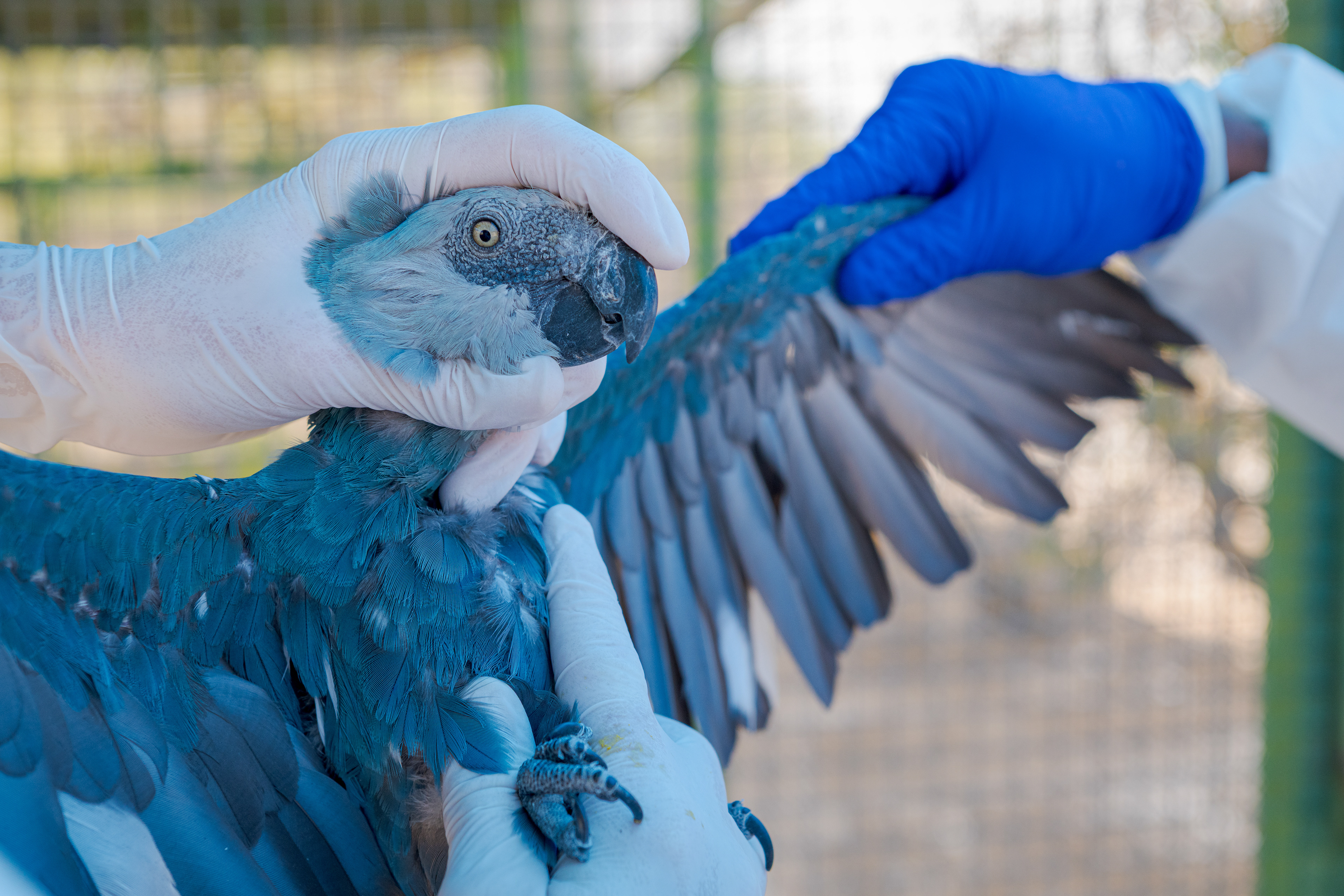 One of only 11 Spix's macaws that are currently free ranging, part of the first group of animals that was released into nature. In order to secure a viable, long-term population, the circovirus situation must be dealt with.